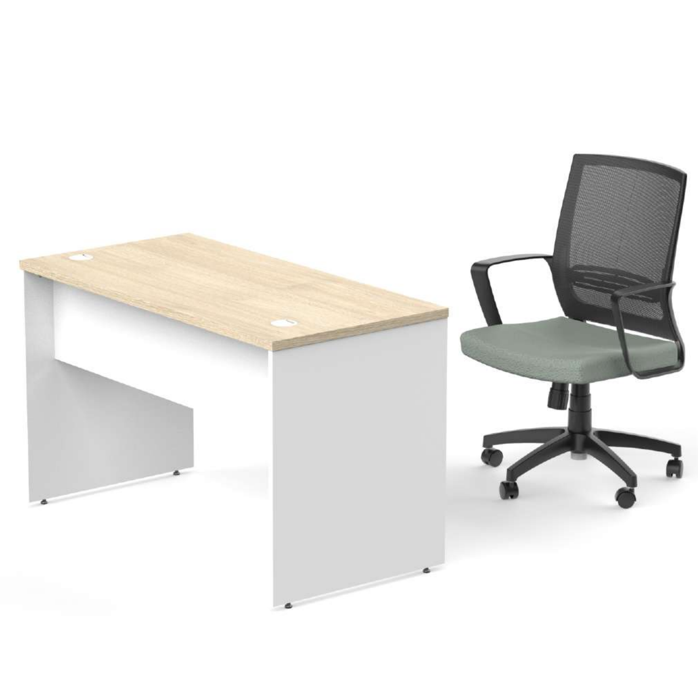 Escritorios individuales y colectivos de base panel, cajoneras y archivadores componen la línea.