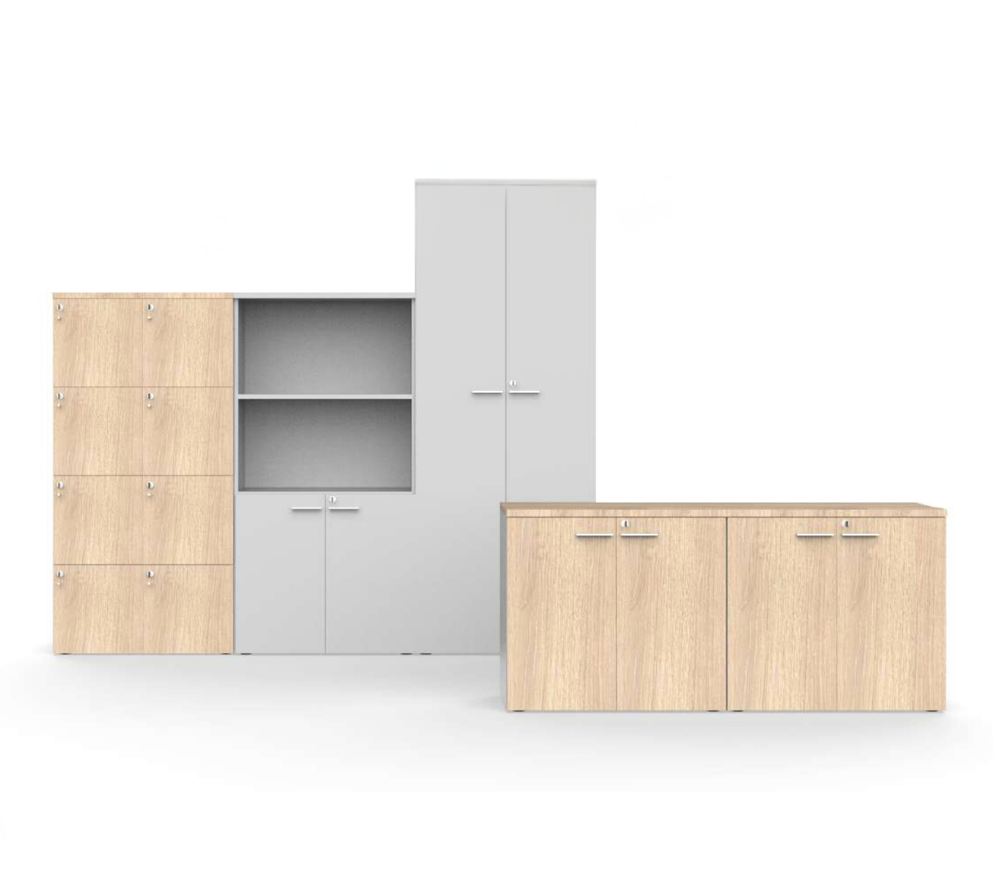 Fabricado íntegramente en placas melamínicas, permite amplias configuraciones y combinación de colores.